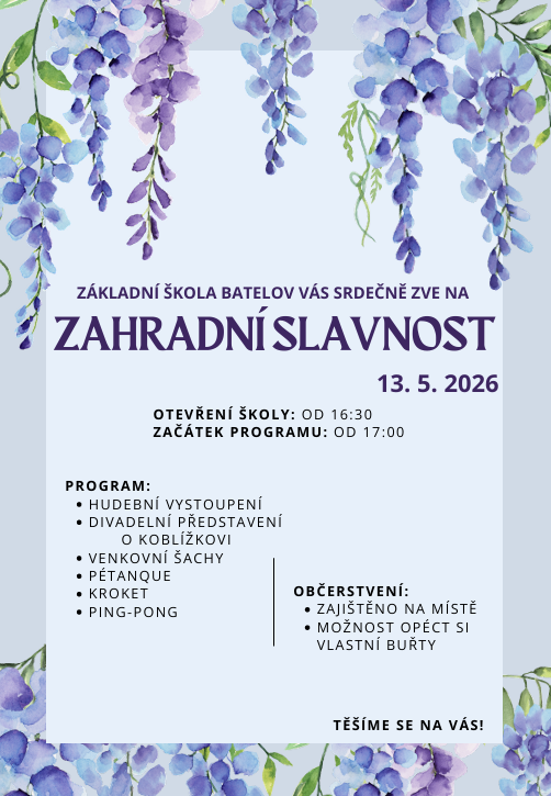 Základní škola Batelov Vás srdečně zve na Zahradní slavnost